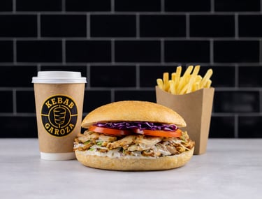 Fokačas kebabs - Grilētais, frī kartupeļi M izmēra, mērce un dzēriens pēc izvēles